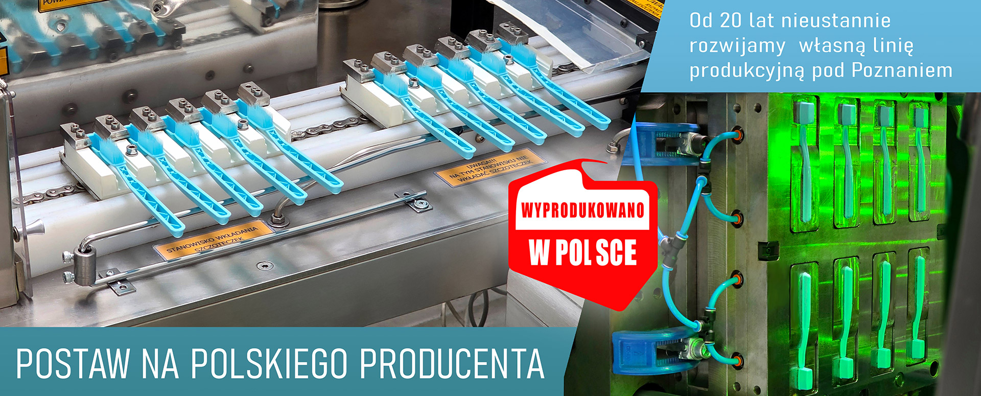 Produkcją szczoteczek do zębów zajmujemy się już ponad 15 lat. Posiadamy park maszynowy zbudowany według własnego projektu! Wszystkie inwestycje realizujemy ze środków własnych.
