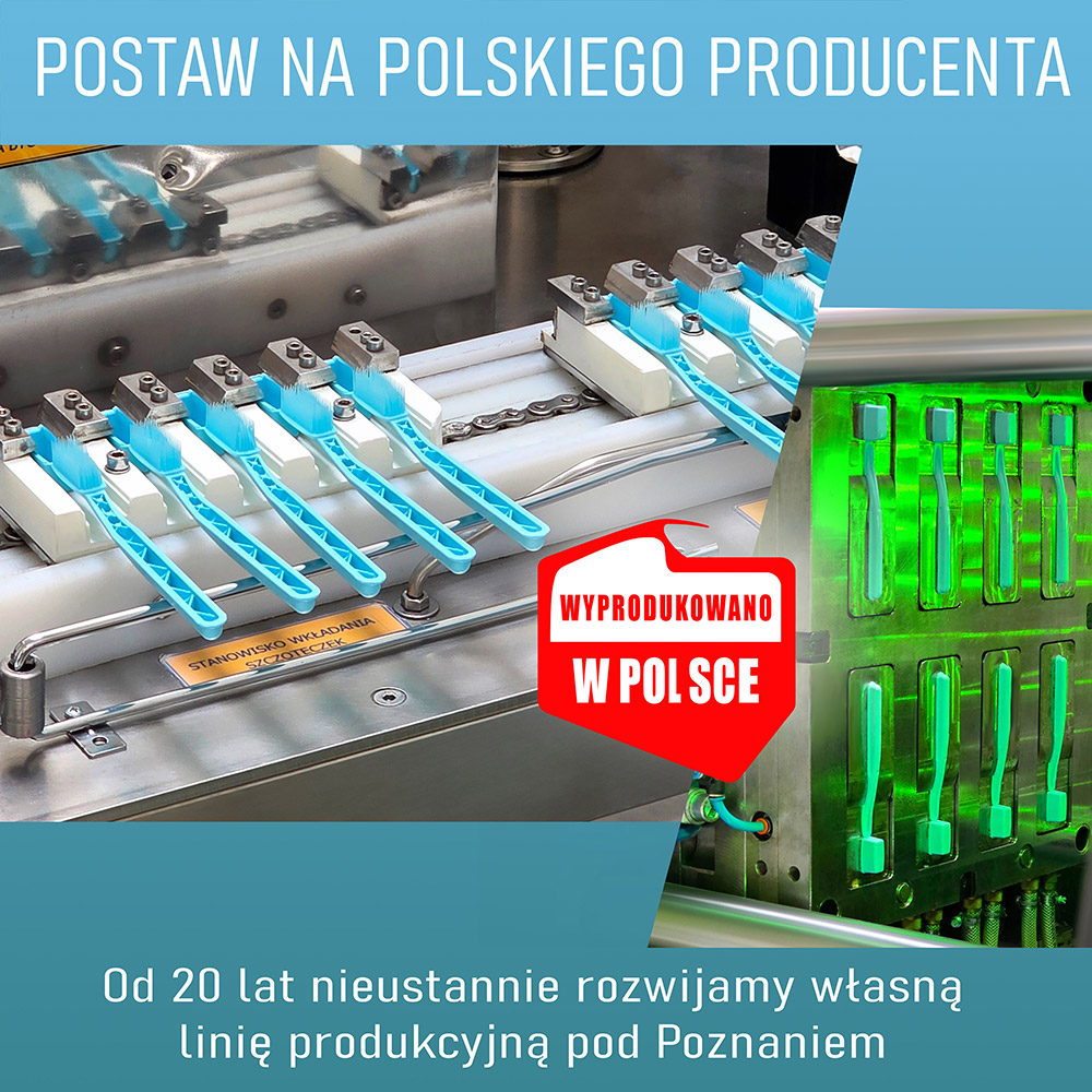 Szczoteczki do fluoryzacji są produktem polskim, produkowanym w naszym zakładzie produkcyjnym w Suchym Lesie pod Poznaniem